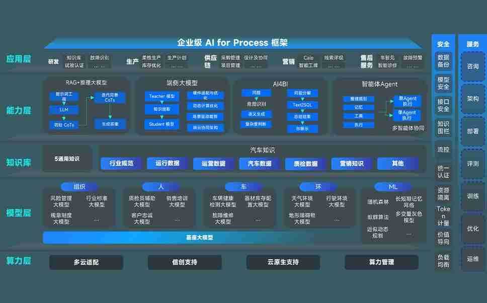 端到端的一站式AI工作空间深度融合了从企业战略规划到日常经营的全流程业务板块,,定向解决车企内部领域多、、部门多、、、、链条长、、场景碎片化等难题,,,,支持车企快速构建以AI为核心的生产力写作体系,,实现任务执行与AI能力的无缝集成与交互