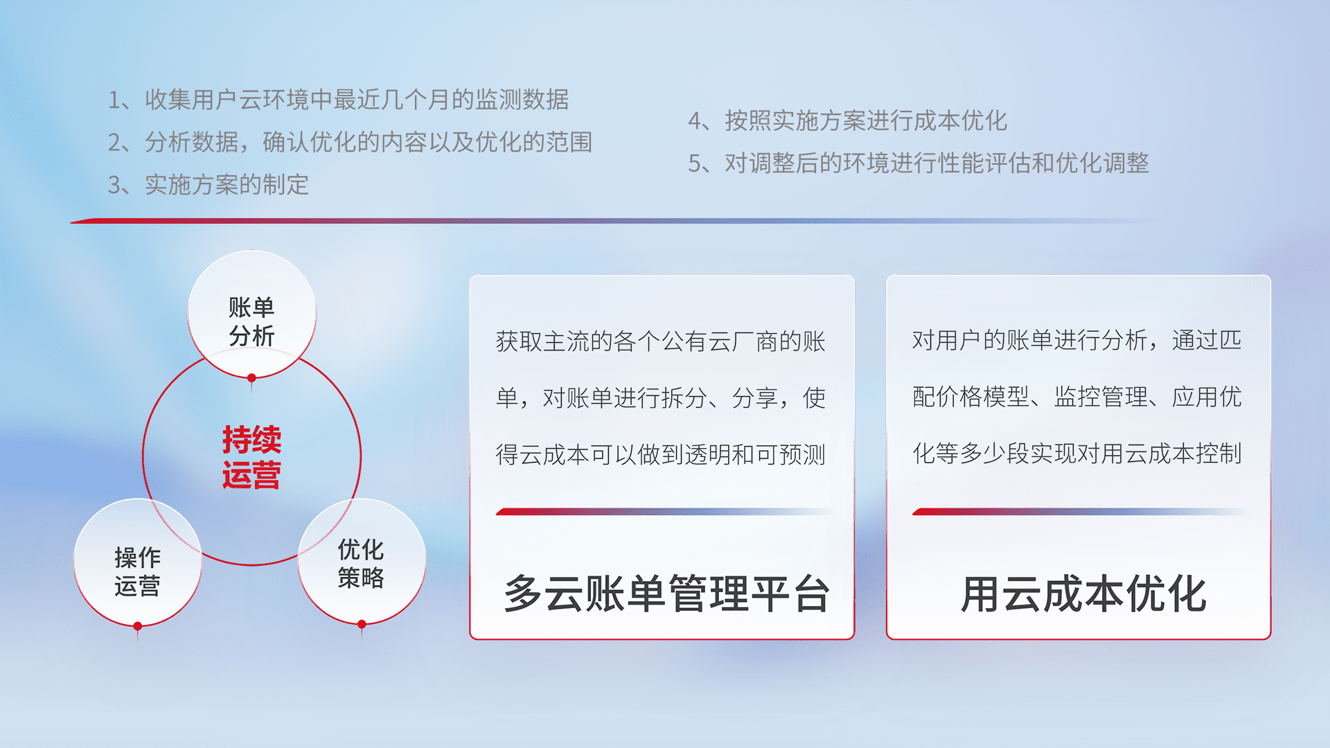 监控业务系统资源开销,,,对资源的消耗精确计量,,实现费用的透明化管理,,,不断提升资源使用率,,,调整资源购买方式,,,,降低资源费用成本,,用云成本可预测、、用云费用可优化,,,云资源配额有据可依。。